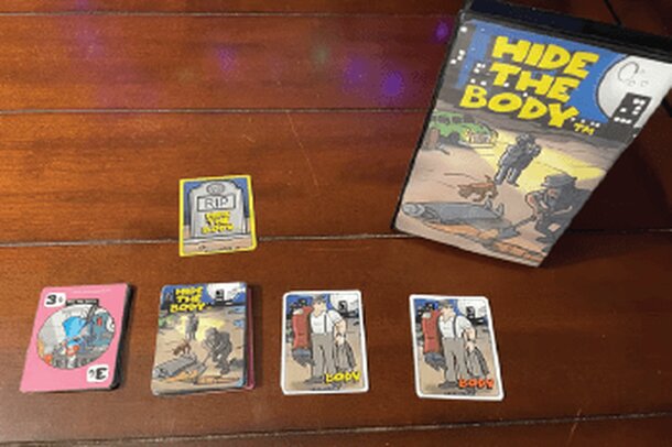 A fast paced, easy to learn family/party card game with artwork reminiscent of/modelled after the classic inspector comic books like Dick Tracy. Players (the villains) have corpses to dispose of and a limited number of holes in which to hide the bodies. They can work together to get their bodies safely buried or get the Inspector or his cadaver dog to dig...