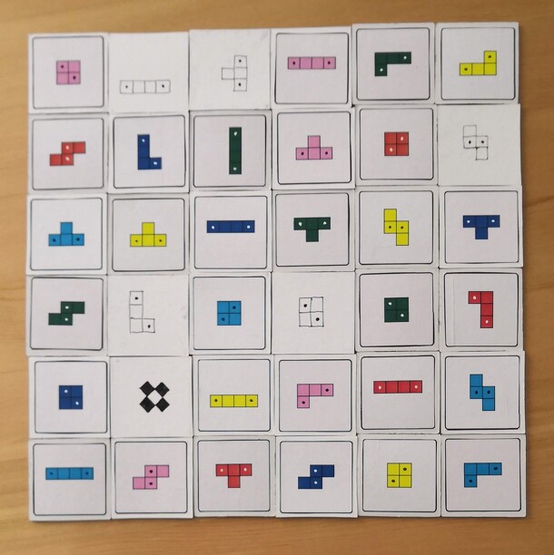 Sirtet is a little 15 minutes abstract strategy game for 2 players, about harvest, sacrifice ... and colorful tetrominoes! The game is played with 36 custom tiles. The players discard tiles to harvest new ones from the board, trying to collect the largest number of tiles of the same color. The Sirtet Solo variant allows you to play the game as a solitaire....
