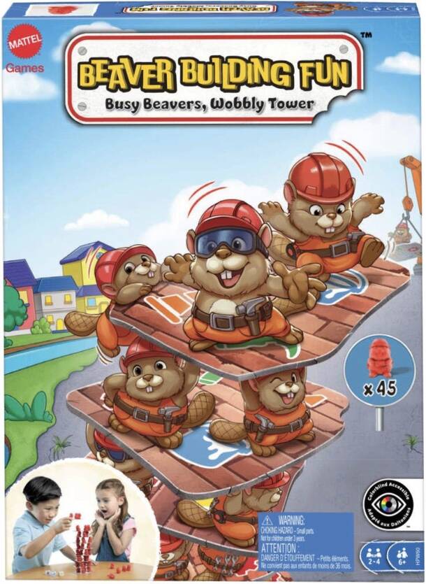 As the wobbly tower grows higher and higher, tension builds as players wait to find out which one will make it fall! Roll the dice to see what symbols come up, then put a beaver on each matching symbol on the Building Tiles. Once a tile is full, it must be placed on a tower. But BE CAREFUL, if the tower falls over that ends the game and you will lose! The...