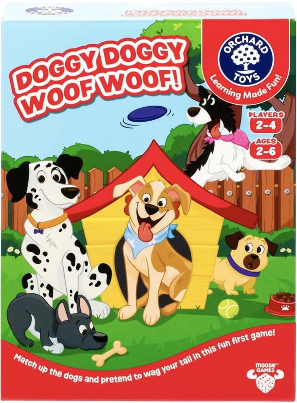 Match up the dogs and pretend to wag your tail in this hilarious matching game! Pair doggy heads and bodies in this hilarious card game 2 ways to play! For younger players complete dogs on your kennel board, for older players try to collect as many complete, matching dogs as possible! Chunky, wipe-clean cards are ideal for little hands Doggy Doggy Woof...