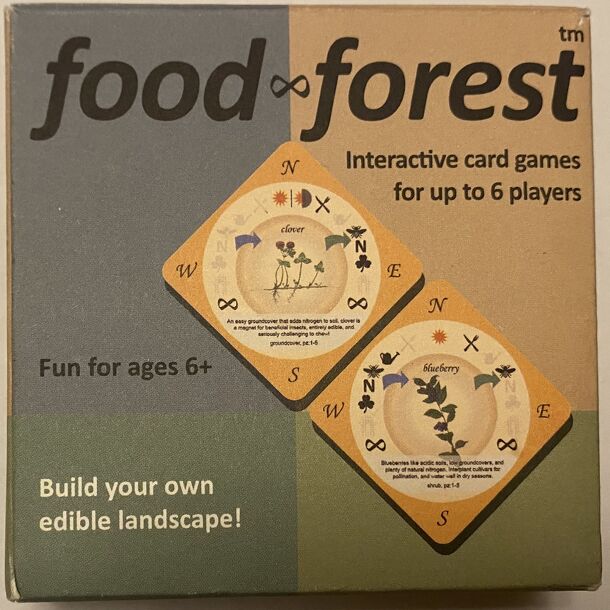 Food Forest is a versatile set of playing cards that can be used for playing many exciting games. As with ordinary playing cards, games are based on matching. Unlike ordinary playing cards, you match "inputs" and "outputs". [polination, nitrogen , extra water…] Inputs are on the left side of the card(with the arrow pointing in) outputs are on the right...