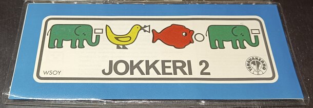 Jokkeri 2 consist of Domino-type cards with shapes (square or triangle), animals (elephant or duck) or number (1-5). At the start of the game all cards are delt evenly to players. One player puts one card in his/her hand on the table. Other players will try to find card with as many symbols in it and place it on the table besides the first card. Player who...