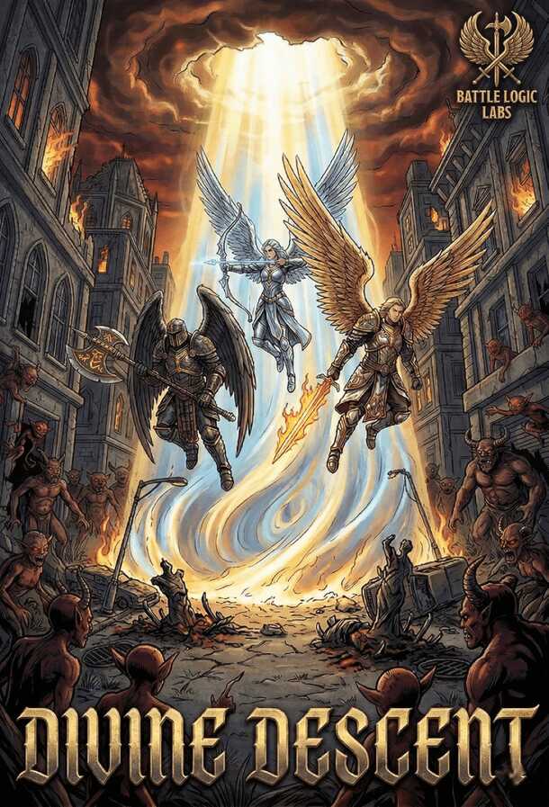 Divine Descent is a high-stakes, narrative-driven tactical skirmish game for 1–3 players. You command a strike team of three powerful celestial warriors—Angels of Might, Grace, and Zeal—sent from the heavens to purge a demonic infestation and seal the Abyssal breach. This product is designed for the modern wargamer, combining the tactile satisfaction of...