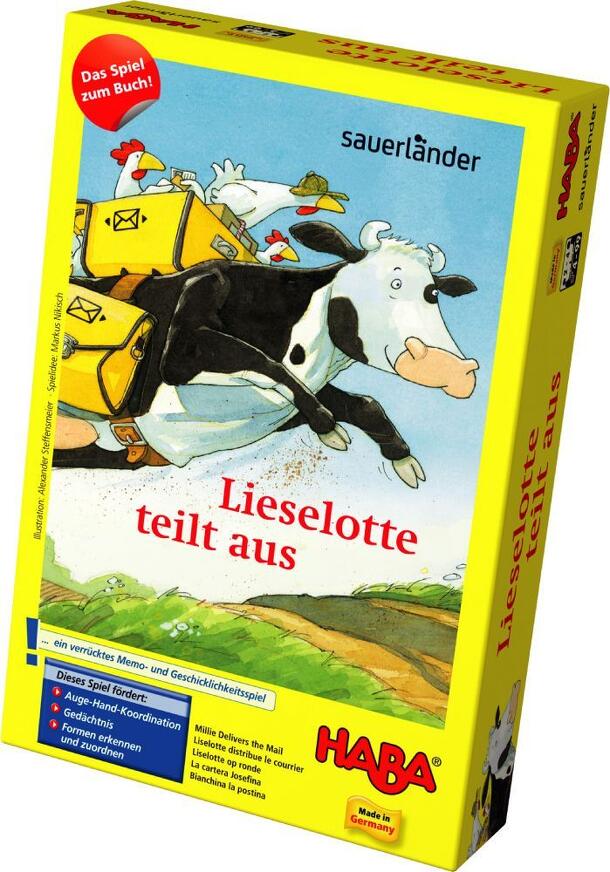 Game description from the publisher: Lieselotte the cow's dream has come true. Finally she is allowed to help the mailman deliver the mail – but it is not so easy as the pile of parcels is very heavy and wobbly. And before she can deliver anything, she must first find the chicken that is to receive the parcel. Who can help Lieselotte deliver the parcel to...