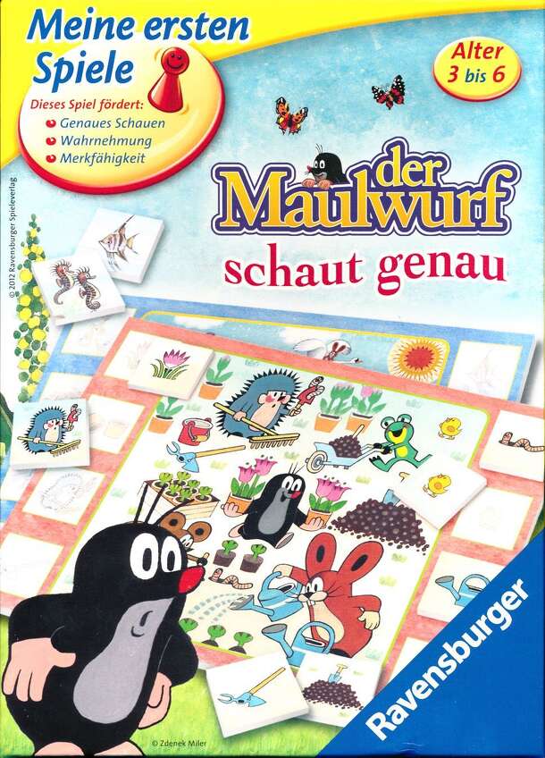 Do you see the little mole? While playing on the meadow or at the sea, making a picknick or working in the garden? But only if you look carefully at the pictures you'll recognize all the details to be able to identify the correct tiles for your board. Ravensburger children's game. Among 32 different tiles those have to be found which are matching the...