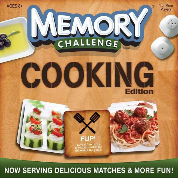 Publisher Blurb: A Feast for Your Eyes! Wet your appetite with tasty foods while you play the world's most popular matching game, Memory! Match delicious appetizers, entrees, side dishes and desserts with beautifully photographed Meal Cards. A New Recipe For Fun. Directive cards add all new game play by allowing players to swipe matches, take extra turn...