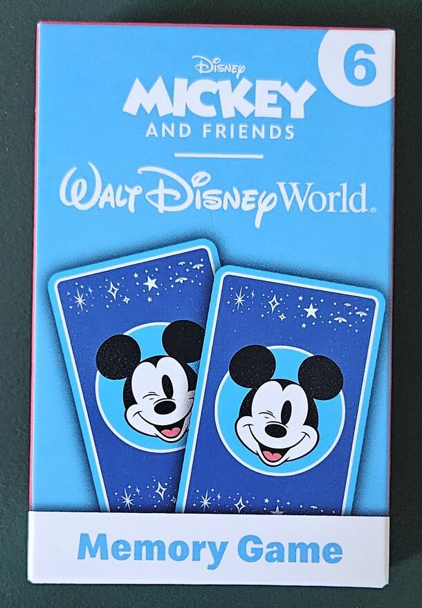 McDonald's Happy Meal Toy #6 in this series. The Memory Game is for 1-6 players. The included bonus game, Sequence Champion, is also for 1-6 players. The game includes 32 cards plus a rules sheet. The cards come in pairs and depict Disney icons such as Mickey’s Face, Cinderella’s Castle, or Goofy’s Hat. From the rules: Game Instructions: Memory Game...
