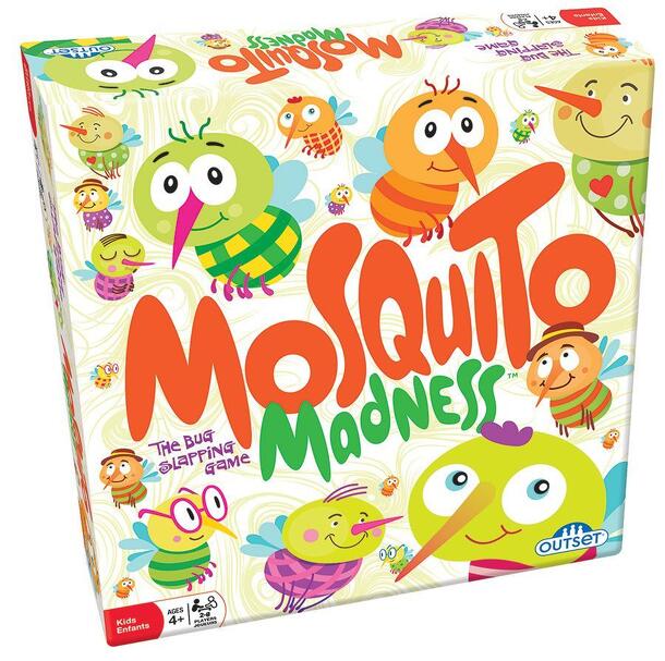 Mosquito Madness is a bug-slapping matching game. Players frantically race to find the nine mosquitoes pictured on their card. The goal is to be the first to collect all your mosquitoes. There are 72 mosquito discs for all players to see. Each player has a collecting board for the mosquitoes they need to find. Once all players turn over their collecting...