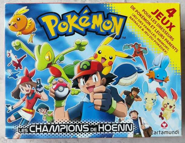 From the back of the box (translated from the original French): "Catch all your favorite Pokémon and become the best Pokémon Trainer! The box of Pokémon: Les Champions de Hoenn contains four different card games to discover with your parents or your friends. You will be able to catch the most famous Pokémon of the Hoenn region, (but also Pokémon from other...