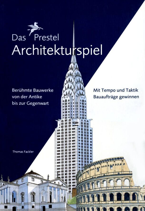 From my non-literal translation of the game description in the rules... Das Prestel Architekturspiel displays a panorama of architectural works of art in an exciting and involving game. Two to five players compete to construct 24 of the most important buildings in architectural history. In the game, different building designs are presented to the players....