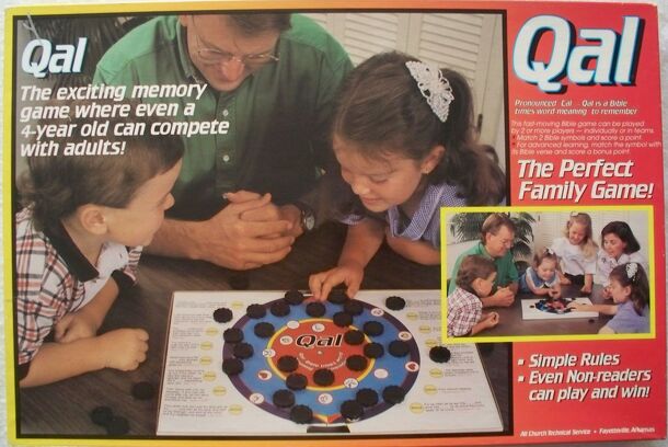 From the instruction sheet: "Qal" -- pronounced "Cal" -- is a Bible-times word that means "to remember." Qal is an interesting and challenging game of memory -- one where even younger non-readers can compete effectively with adults and teens. ... The object of the game is to find and match as many of the 18 different Bible symbols as possible. When played...