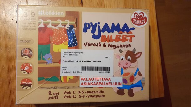 Akseli Moo is hosting the best pyjama party ever! In Leikkien Pyjama Party, you get to join Akseli Moo’s sleepover fun! Look for the Moo character among the guests who is dressed in the outfit matching the colors of the dice. Collect the most Moo tiles and you’re the winner! Add the recognition cards to the game and search for the correct Moo tile based on...