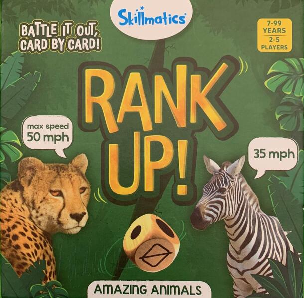 In Rank Up! the players are competing to win the most cards through a series of rounds where all players compare a statistic chosen by the round leader. The core of this game builds on the classic “war” card game that most kids already know how to play. Design features added in this game include: 1) rolling a game-specific wooden die that will determine...