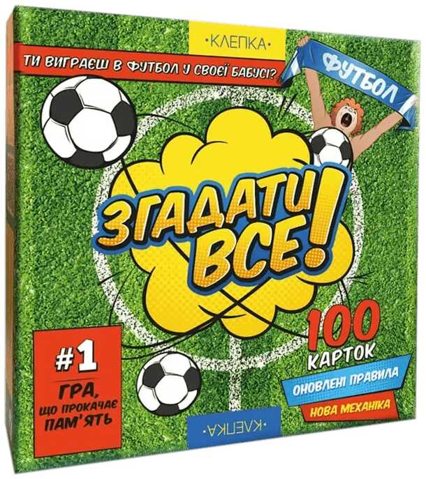 Board game "Remember Everything! Football" will finally unite ardent fans with those who only know that the ball is round (but that's not accurate!). And it's still unclear who will assemble a cooler team - a fan with experience or his grandmother. 88 almost collectible cards with the top players of the season and football legends, 2 yellow cards, 1 red...