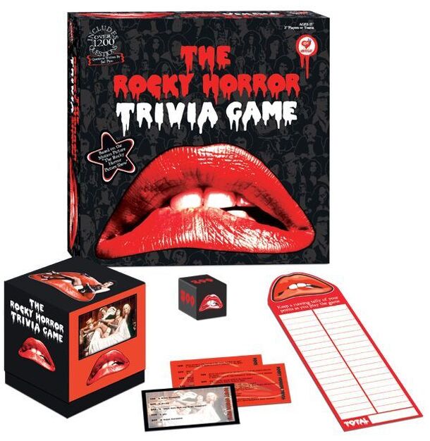 This trivia game is based on 20th Century Fox movie, The Rocky Horror Picture Show. Recommended for Ages 17 and up. From the box: It's just a jump to the left...to play the Rocky Horror Trivia Game. Pick one of over 1,200 questions about your favorite transsexual movie and its stars. "It's astounding!" And then a step to the right...to roll the custom die...