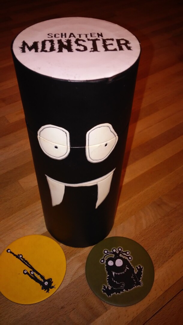 Schattenmonster is a memory game. In the basic version, players take turns flipping open pairs of tiles - matching pairs can be kept, others are flipped back. Pairs consists of a monster picture on a colored background and its shadow on a grey background. In the advanced rules, flipping open certain monsters without finding the matching tile immediately...