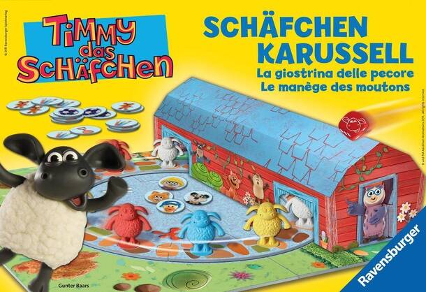 Timmy, the little lamb, goes to kindergarten - and likes to play with colors. The goal for the players is to guess which color Timmy has when he comes out of the kindergarten. The kindergarten is a large cardboard barn on the playing field. It partly covers a circular track that can be turned, so that four of the sheep on it are always hidden from view....