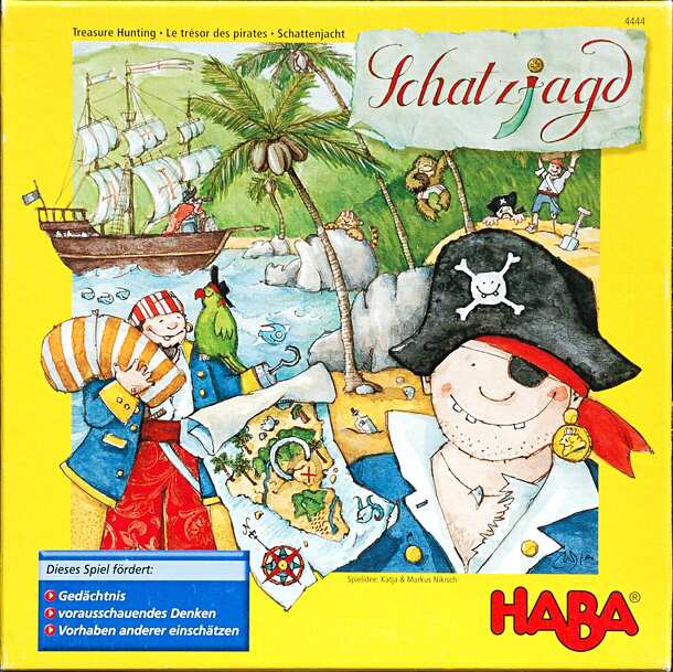 The pirates have landed on the treasure island. Now they have to quickly find the way to the treasure by uncovering the right cards. They can also swap cards in order to mislead the others. But watch out: the treasure is guarded by a wild tiger! Who will load up with gold and jewels and then be the first to return to the pirate ship? A tricky memory an...
