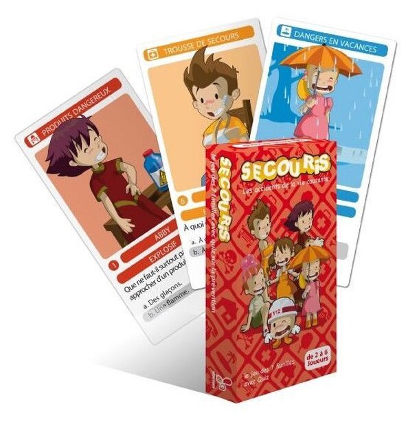 Really close to happy families or games of trades, the goal is to collect a complete set of cards. the theme of the game is first aid and families are related to to it (hazardous Products, first aid kit, holiday hazards, ect..) after asking for a card, you need to answer the question on the card to win it. The first player to collect a complete set win the...