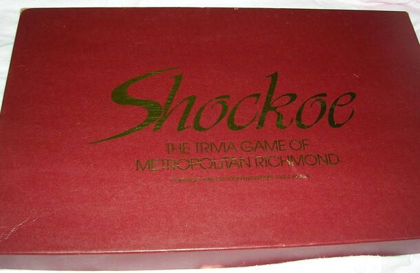 This is a trivia game that has questions from around the Richmond, VA area. The introduction to the rules states: Welcome to Shockoe! Enclosed you'll find 150 questions in each of five categories - Geography, History, Media, People and Variety - all related to Richmond. We hope that this game will serve several purposes. First, it is a game... a...