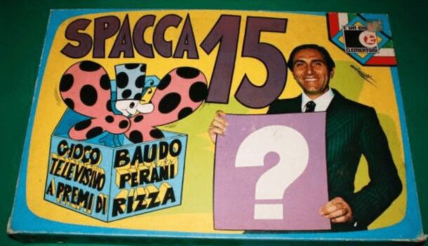 Italian board game of the '70, based on the quiz show "Spaccaquindici". Three players try to answer questions to identify characters and events through pictures or meaning of common words. The mechanism of the game also included the typical actions of some card games, how to bet or fold, so the player must have skills typical of game of chance in addition...