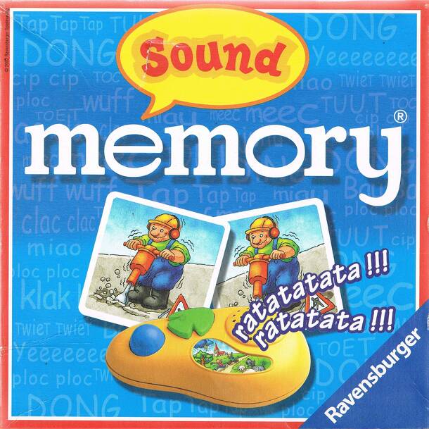 A modern twist on the traditional game of Memory. THere are 24 tiles featuring 12 pairs. The pairs are represented by appropriate sounds on the electric gadget (who is called Marvin the Mouse). The tiles are placed face down on the table and shuffled around. In a turn, a player presses the Green Arrow button on Marvin and a random sound will be heard. Now...