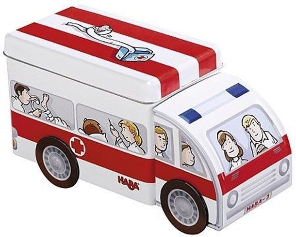Raise the alarm! The ambulance is on call! The paramedics need luck and good memory skills to find their way to the right house. Oh dear! Cars are blocking the streets on the way back to the hospital. How you have to use the warning light and deliver the patient to the hospital. Tatü-Tata Das Krankenwagenspiel follows the "sensory" ideas from Haba's...