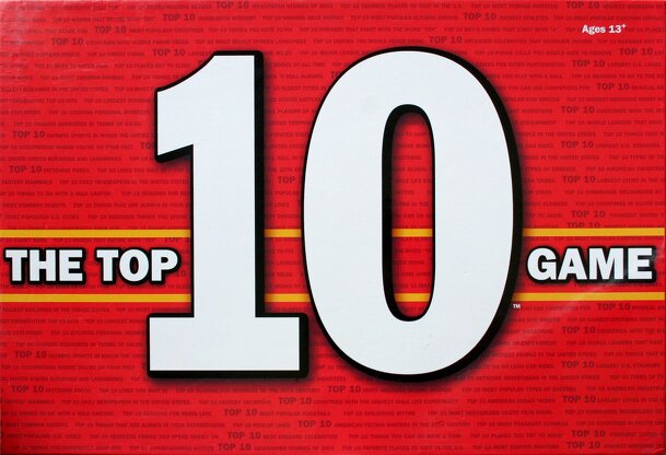 Can you score a perfect 10 and, in 60 seconds or less, come up with the top 10 answers to the TOP 10 ANIMALS THAT COULD BENEFIT FROM PLASTIC SURGERY or the TOP 10 CHOCOLATE-CONSUMING COUNTRIES? The Top 10 Game brings the popularity of top 10 lists to a unique board game where players must come up with 10 answers to every question about pop culture, sports...