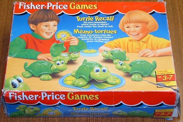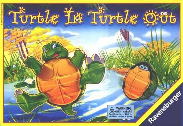 A memory game for small children (Ages 3 - 6). After spinning a disk to determine if the turtle is In or Out, the player decides the color of the shell (s)he is looking for. If correct, the winner gets a token returned, the turtle back upside down and the next player gets to try. There is also a shuffle circle which can be swapped with any of the face down...