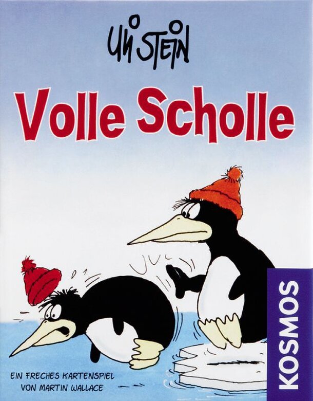 In Volle Scholle, players need to balance their penguin and ice floe holdings in order to come out on the top of the world – er, make that the bottom of the world since penguins live in the Antarctic. In any case, the game includes 72 penguin cards – four colors valued 1-5 (x3) and twelve jokers valued 2 – and 18 ice floe cards, one game-ending card and 17...