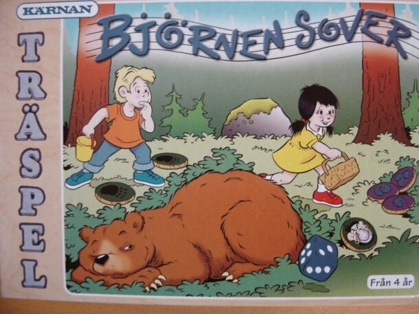 The title (The bear is sleeping) is a well-known children's song in Norway and Sweden. The game was first released in Norwegian in 2002, and in a much improved Swedish version in 2004. In the original version, the players try to collect gold coins without waking the sleeping bear; in the later version they gather blueberries instead. Before the game...