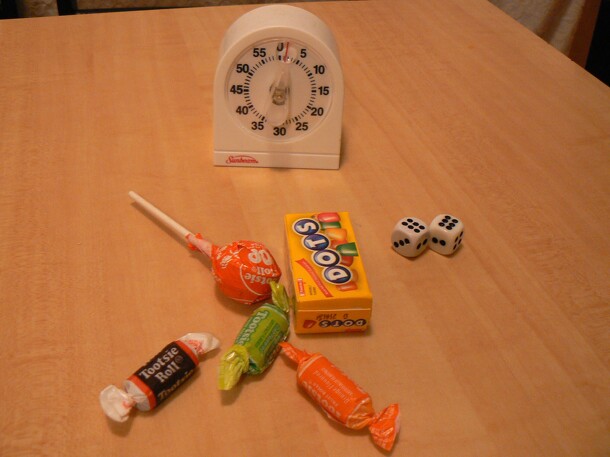 A fun party game that allows you to win candy. The game is simple. There is enough candy for everyone participating to have at least 2 in the center of the gaming area. A die is rolled to determine the starting player. A timer is set for 10-15 minutes. Each person rolls 2 dice. With the roll of 7, 11 or doubles the roller chooses a candy either from the...