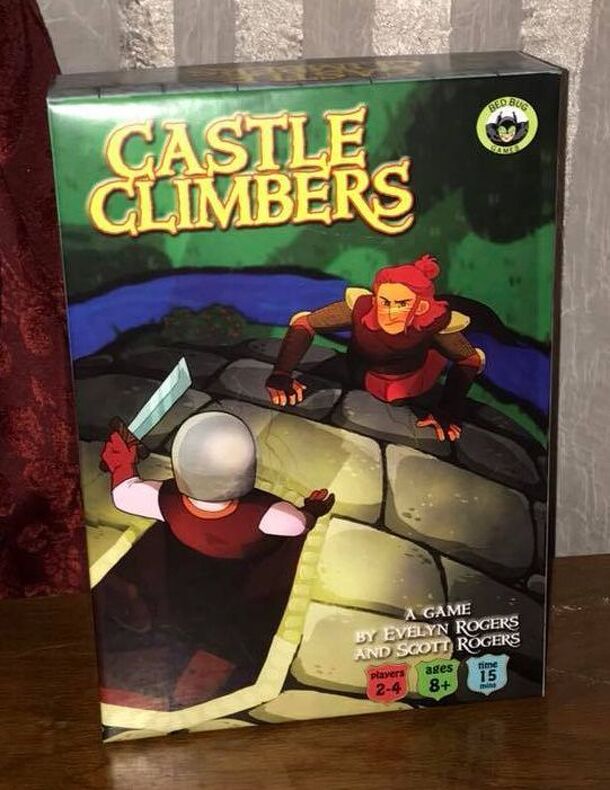 In Castle Climbers, players lay tiles to build up a fantasy castle that they climb with their hero character. As players scramble up the treacherous castle wall, roll dice to battle the grumpy guardians that bar their way. Use a magic sword or wish token to improve your luck. Win the battle to keep climbing. Lose and you'll drop back down! Special tiles...