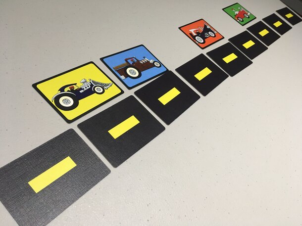Chicken is a quick, press-your-luck party game for 4-16 players. Based on hot-rod drag-racing, players race towards the edge of a cliff to see who can get closest without going over. Each round the road cards are placed face down. Players then places their marker where they would like to stop. Road cards are flipped over one at a time, with each road card...