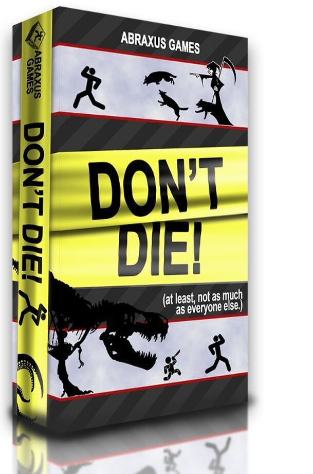 Don't Die! is the fast paced, frantic card game where you try not to die... at least, not as much as everyone else. In Don't Die!, players take turns pulling Hazard cards from the deck and laying them face up for all to see. Each card depicts a unique hazard and a hazard rating. Players then take turns moving the card around the table using "Side-Effects"...