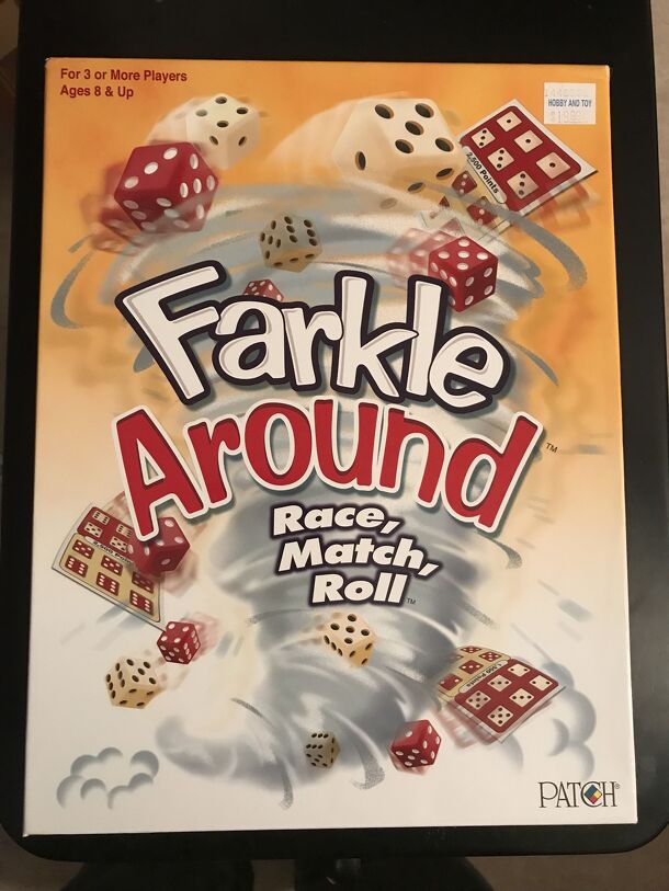 Farkel is a proprietary version of the traditional dice game Farkle (or Dix Mille), and is a push-your luck game played with six dice. You roll 6 dice, and remove any dice you want to use for points. You can stop, keeping the points, or re-roll the remaining dice. Points can be scored by specific numbers (e.g. 5 or 1) or sets of the same number. If you can...
