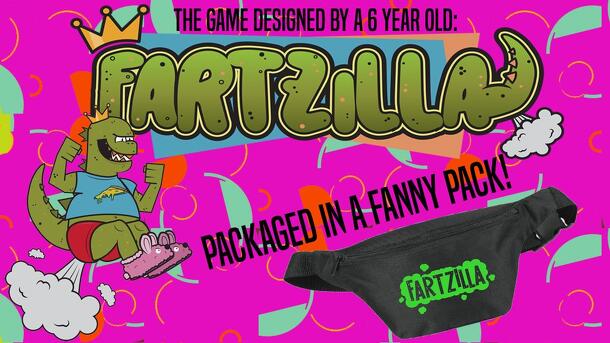 Fartzilla is a push your luck dice rolling card game. Players play as kaiju-esqe "bad guys" aiming to destroy as many buildings as possible. Players guide their individual character or team of characters consisting of: Fartzilla, Bad Phone, Captain Toenail, Chicken Powerup, Lazer Zombie, and Professor Toiler Paper. Teams can be uneven to make game play...