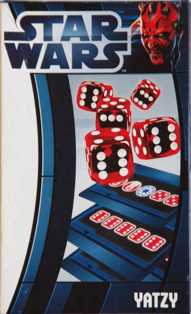 As in Yatzee you throw five dice. You can throw each die 3 times and you score by getting certain combinations. In Star Wars Yatzy you don´t have a fixed set of combinations, but instead you draw mission cards. Each player have two mission cards and they draw a new if they have less than 2 cards. you dicard a card if you finish a mission. If you don´t use...