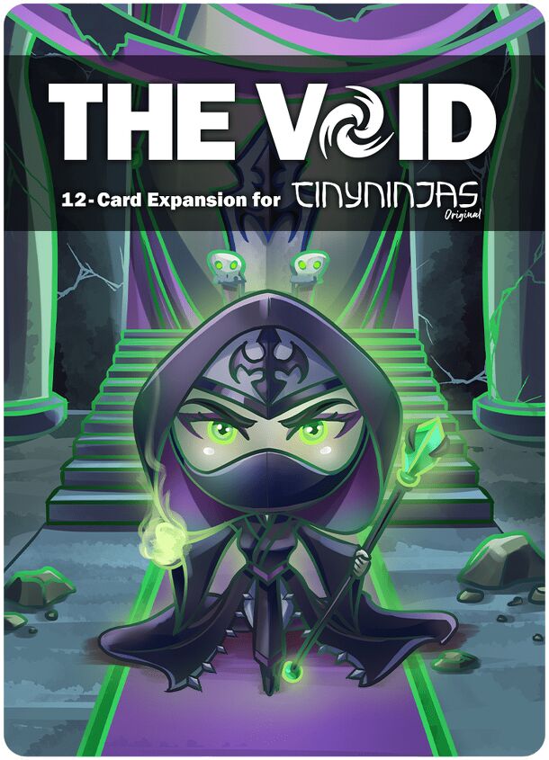 The Void adds 12 new ninja cards to Tiny Ninjas. Including all new characters: Queen, Skeleton, Mystic, Zombie, Dragon and also introducing YELLOW DAMAGE to the game! —description from the publisher -- Second Edition -- The Void Expansion adds 12 new Ninja Cards to Tiny Ninjas: Original Includes: Queen, Mystic, Dragon, Zombie Solo, Zombie Archer, Zombie...