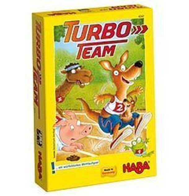 The marathon-camels are warming up, the hurdle-kangaroos are jumping up and down, the lively frogs are stretching their legs, and off they go! Team turbo is a dice-powered animal race game with pigs, camels, frogs and kangaroos. Every player has his/her own individual racetrack. Goal is to be the first player finish the whole team while avoiding obstacles...