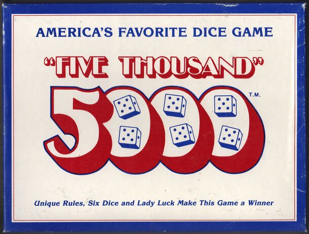 The game of 5000 is a game of chance and choice, played with six dice. Any number can play. Since the last player has an advantage, the first step is to determine by any agreed means the sequence of players. Points are scored with a single die, three dice or six dice. The only single dice which score are the five and one, which count 50 points and 100...