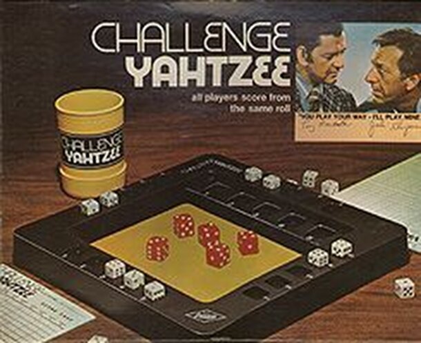 From the back of the box: Casino Yahtzee combines the suspense of a gambling game with the strategy of Yahtzee. The challenge is to toss the dice and roll the numbers you need. Use chips to cover rows of numbers on your gameboard. Win points when you complete a row. Points can be scored across, down and diagonally. Use strategy too. Try to win the rows...