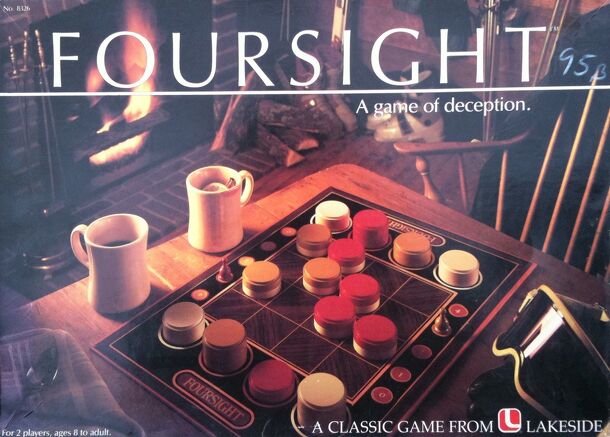 From the back of the box: FOURSIGHT - a classic game for two, is the only board game that actually allows you to play half of your opponent's pieces as well as your own. To win, you must learn to think like your opponent and have the foresight to change your strategy as conditions of play change. Your object: get 4 in a row to win immediately or three in a...