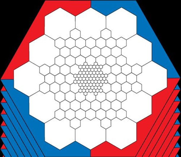 Fractal is a two player game. The unique board, shown in the figures, starts out empty. The two players, Red and Blue, take turns coloring cells with their own color, one cell per turn, starting with Red. Passing is not allowed. Draws cannot occur in Fractal. To win you must form a path of cells of your own color connecting the two border regions of your...