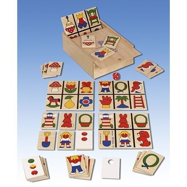 In Guckloch, the players have to recognize pictures through a little hole in a board. If they can name the object they see just partly, they can add it to her collection. The player who has collected a certain combination of pictures first is the winner. contents: 4 wooden collection boards with 6 pictures each 24 wooden boards with a picture 3 wooden...