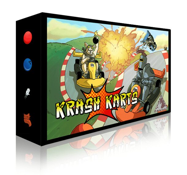 Krash Karts is a table top game in which players race to a finish line that's ever changing. This is because you design the very track you're racing on, while you're racing on it. How it comes together is up to those playing, and manipulating the track to your advantage or against your opponent's advantage plays a large factor in determining the victor....