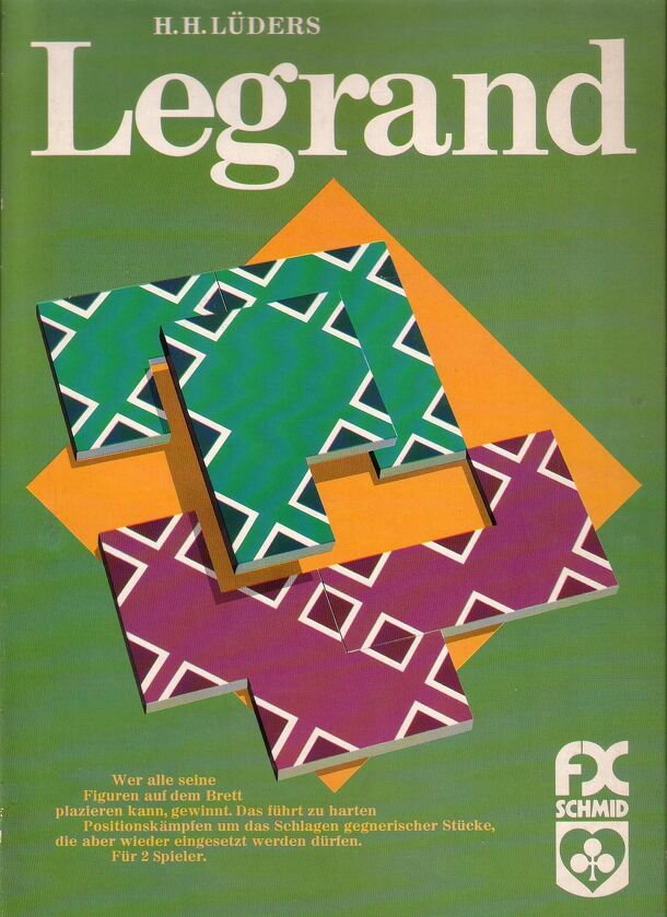 Each player has a set of 20 tiles of different shapes and sizes: 12 x 5-size, 5 x 4-size, 2 x 3-size and 1 x 2-size (88 squares in total). The game is played on a 14x14 board, but five 2x2 spaces are forbidden areas - giving 176 playable spaces. Each tile has small triangles on all sides. If 2 pieces are laying attached to each other, the triangles form...