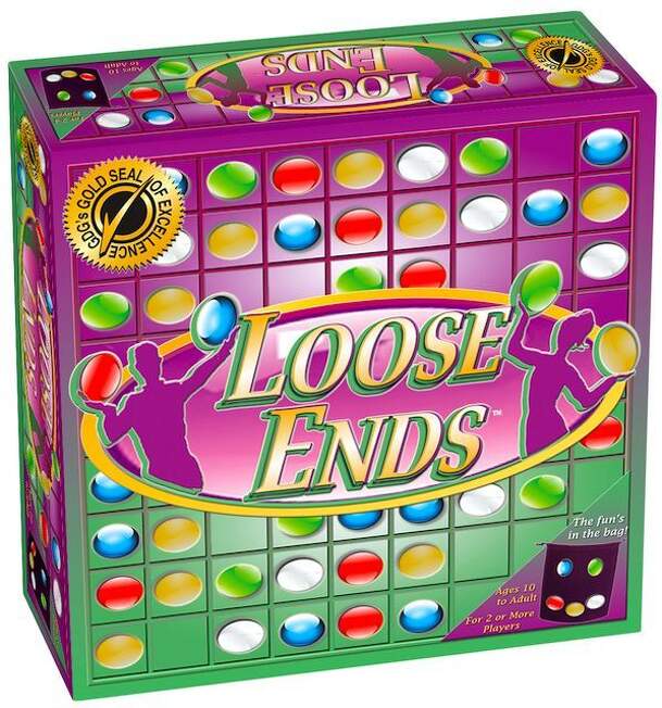 Line Up The Gemstones To Win! Loose Ends is an entertaining game of constant surprises, where good old-fashioned fun meets strategy and luck. Just roll the Pyramid Die and start taking the Gemstones out of the bag. But where should you place them on the Grid? Line them up in color patterns to form Scoring Combinations and win points. But fall short and...