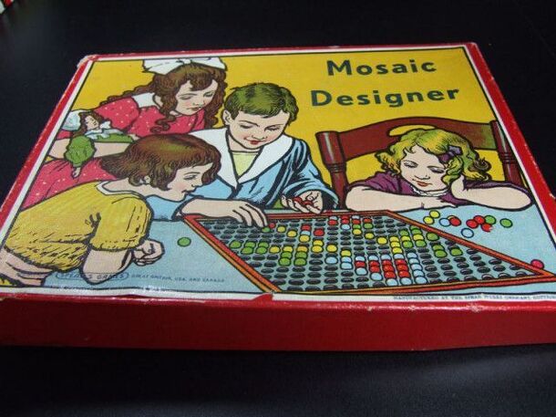 Players pick a color pattern and attempt to recreate it on the board while the other players attempt to do the same or prevent this from happening. Winner is the first person to complete their pattern. Throughout the 1930's and 1940's, the game was produced in Germany. You can tell what era by the box top label. In the 1930's and early 1940's, it was...