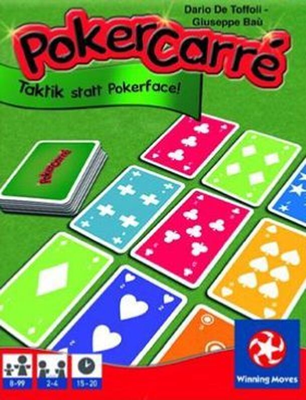 In Poker Carré, players add cards to a grid and try to create sequences of at least four numbers (e.g., 1-2-3-4), sets of at least three cards of the same suit, and sets of at least three cards of the same value. Why is this difficult? The deck consists of 49 cards – seven suits of seven cards numbered 1-7 – and each player starts with a hand of four...